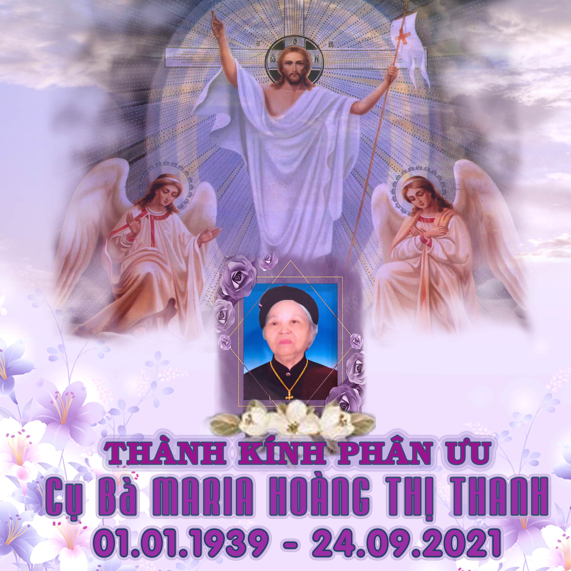 Cha chính xứ,quý cha phụ tá, quý sơ, cộng đoàn giáo xứ, giáo họ xin chia buồn cùng tang quyến. nguyện xin Thiên Chúa tuôn đổ ơn phúc và dẫn đưa linh hồn Maria về nước Chúa hằng sống, vui hưởng ánh sáng vinh quang muôn đời.