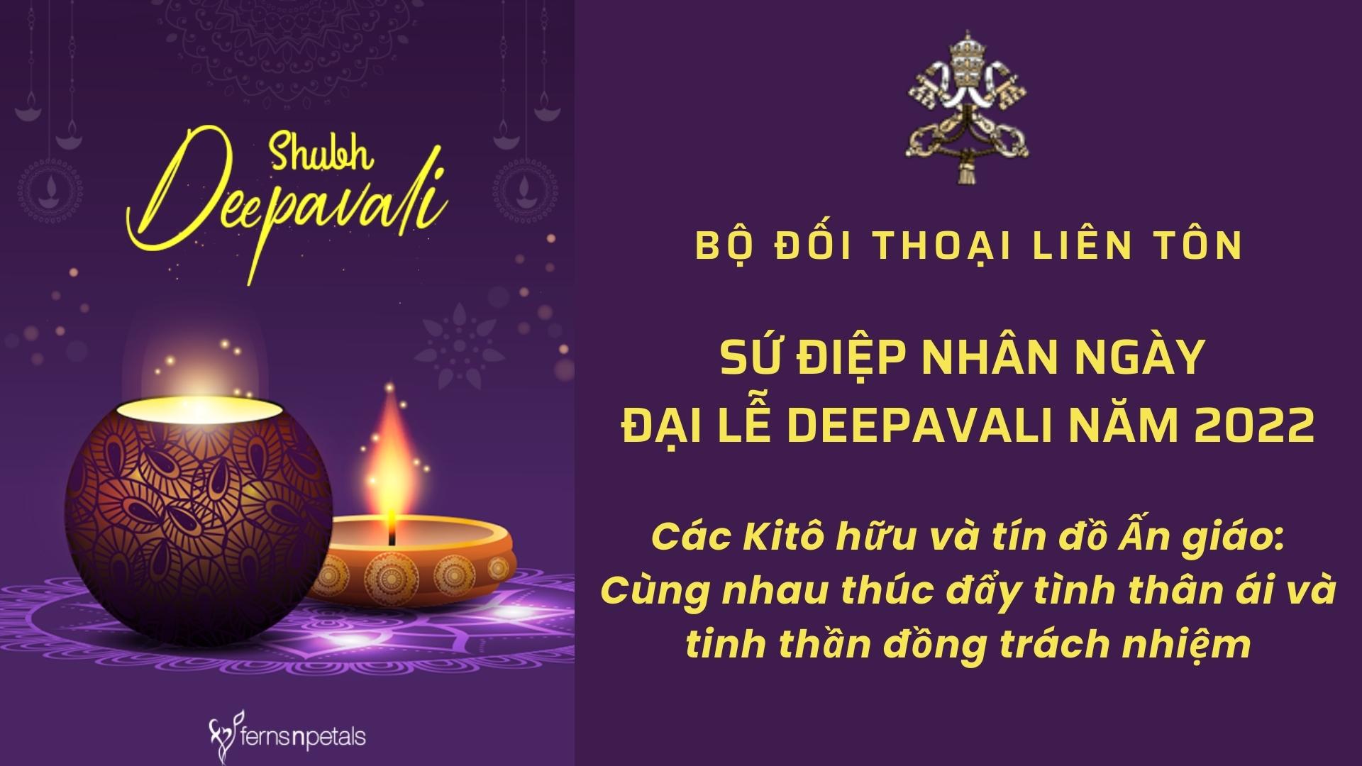 Bộ Đối thoại Liên tôn, trước đây là Hội đồng Toà thánh về Đối thoại Liên tôn, xin gửi đến các bạn lời hân hoan chào mừng và những lời chúc tốt đẹp nhất nhân dịp đại lễ Deepavali, được tổ chức vào ngày 24/10 năm nay. Cầu chúc Đại lễ Ánh Sáng năm nay mang lại ân sủng và hạnh phúc cho các bạn cũng như cho mọi người trong gia đình và cộng đồng của các bạn.