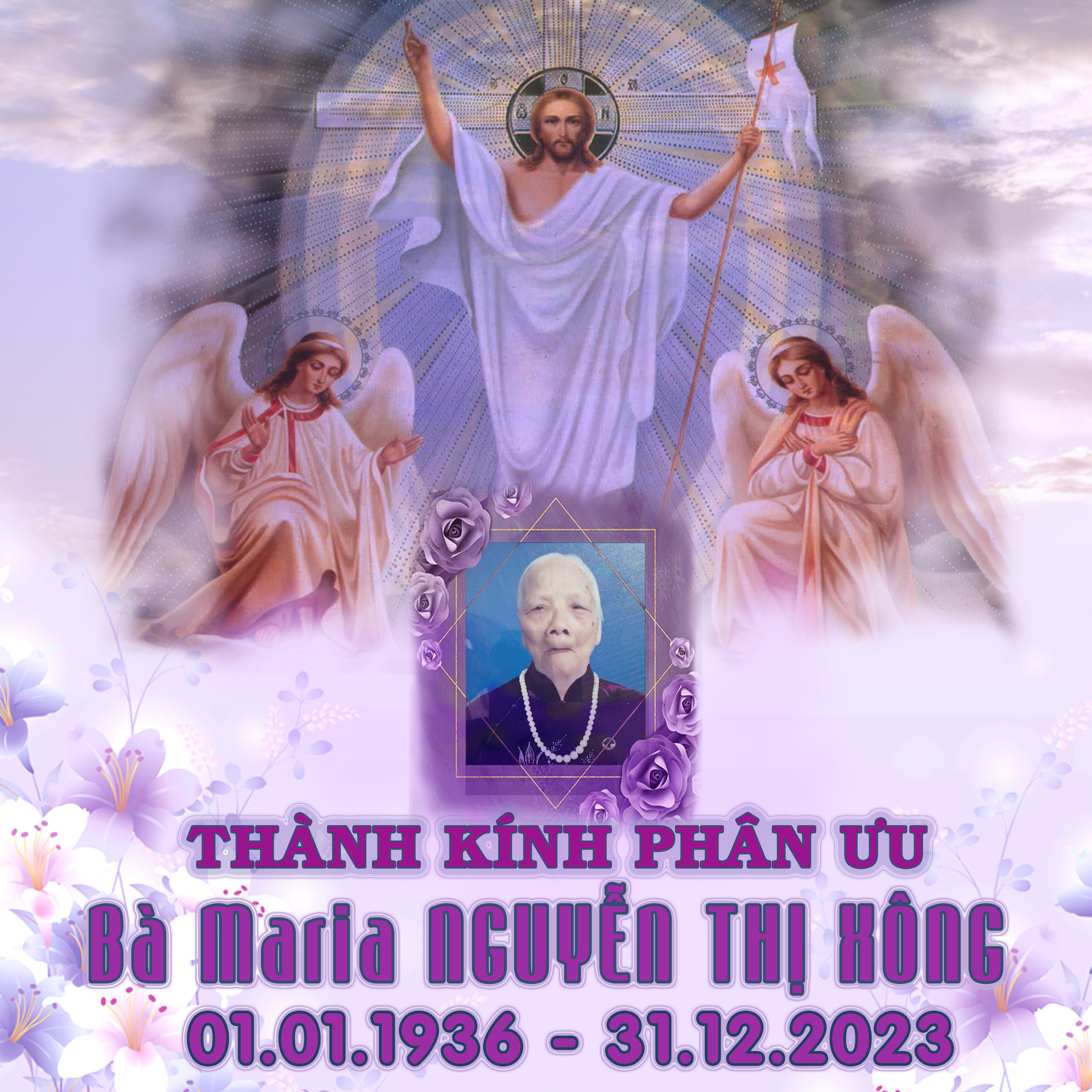 Cha chính xứ, Cha phó xứ, quý cha phụ tá, quý sơ, cộng đoàn giáo xứ, giáo họ xin chia buồn cùng tang quyến. Nguyện xin Thiên Chúa tuổn đổ ơn phúc và dẫn đưa linh hồn Maria về nước Chúa hằng sống, vui hưởng ánh sáng vinh quang muôn đời.