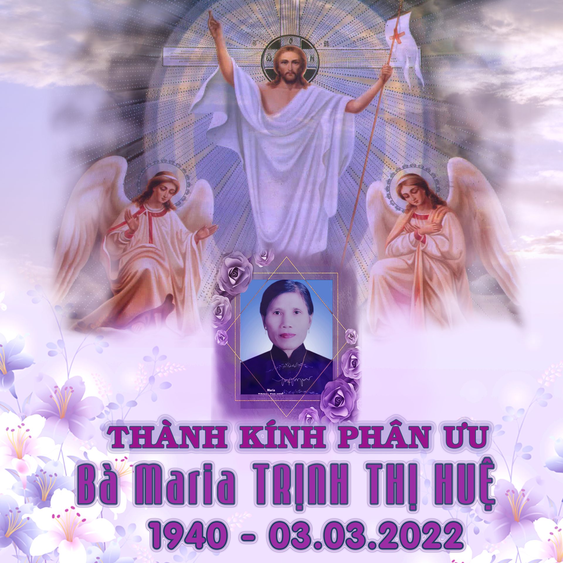Cha chính xứ,quý Cha phụ tá, quý Sơ, cộng đoàn Giáo xứ, Giáo họ xin chia buồn cùng tang quyến. Nguyện xin Thiên Chúa tuôn đổ ơn phúc và dẫn đưa linh hồn Maria về nước Chúa hằng sống, vui hưởng ánh sáng vinh quang muôn đời.