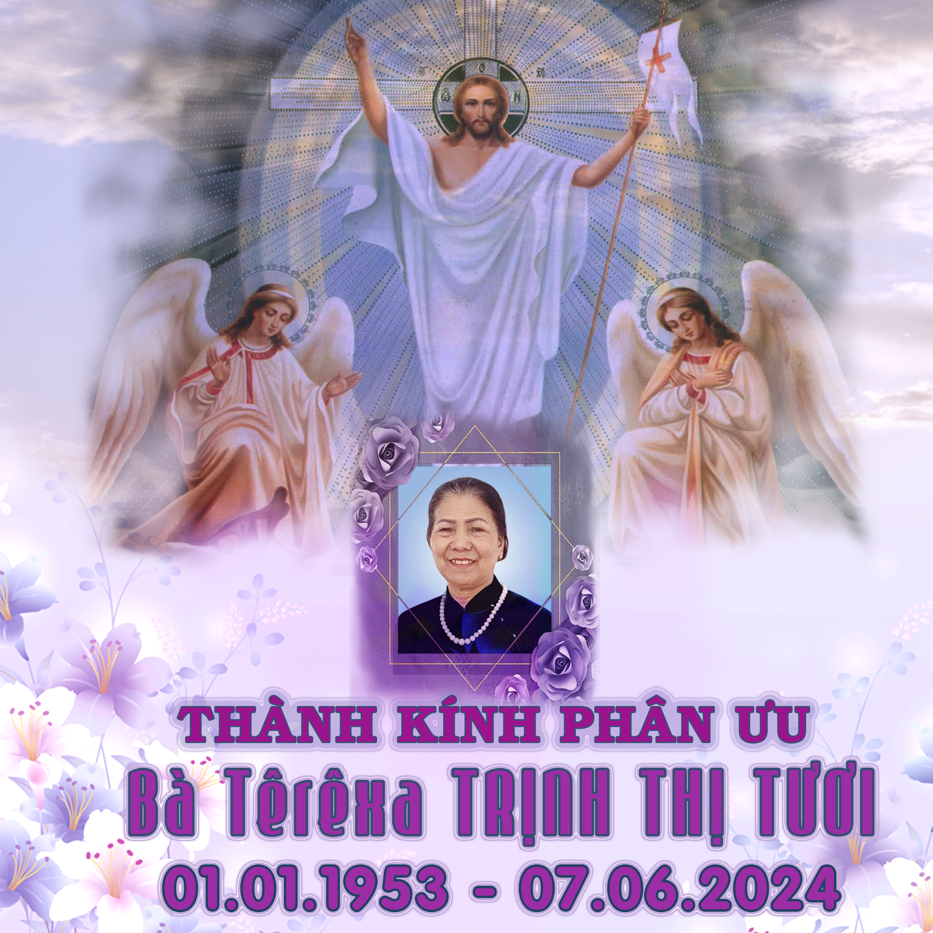 Cha chính xứ, Cha phó xứ, quý cha phụ tá, quý sơ, cộng đoàn giáo xứ, giáo họ xin chia buồn cùng tang quyến. Nguyện xin Thiên Chúa tuổn đổ ơn phúc và dẫn đưa linh hồn Têrêsa về nước Chúa hằng sống, vui hưởng ánh sáng vinh quang muôn đời.