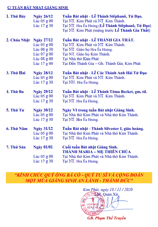 Chương Trình Đại Lễ Giáng Sinh 2020