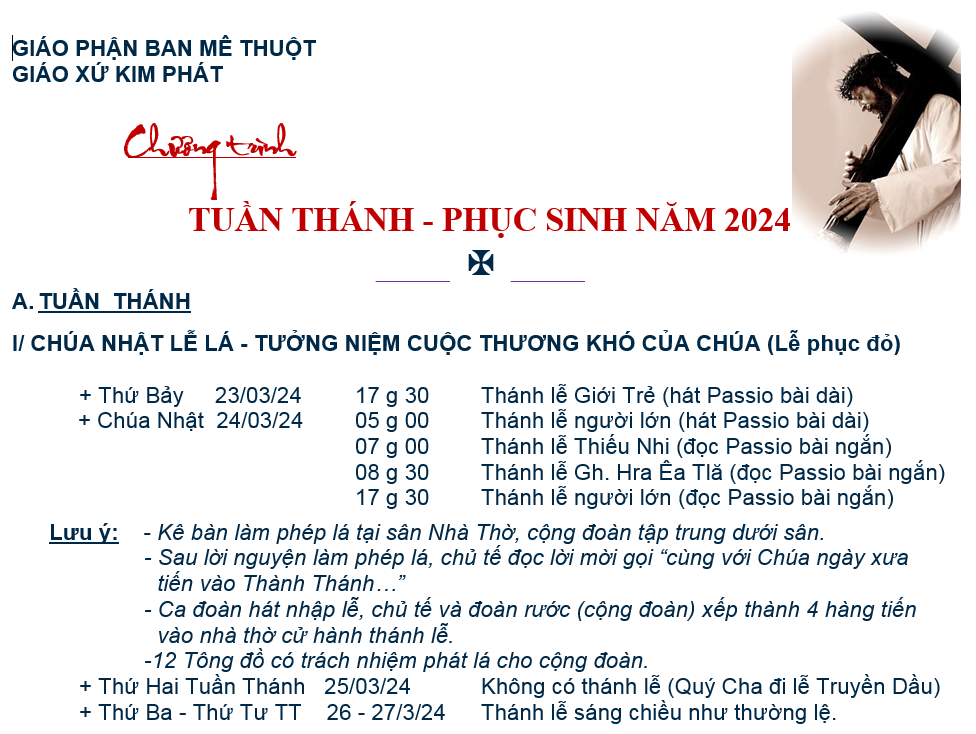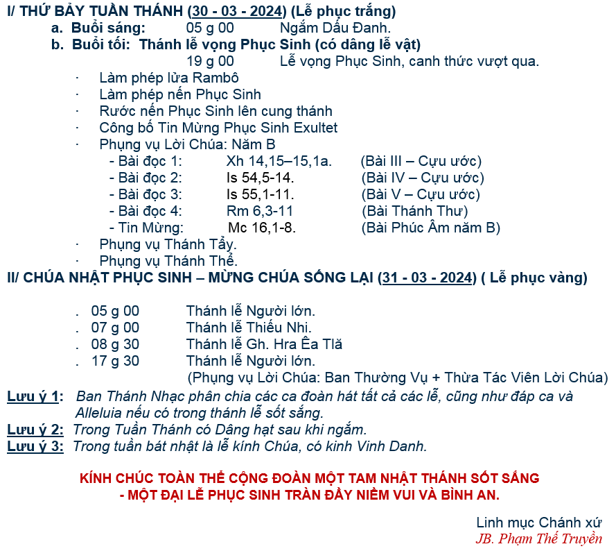 Thông báo về một số lưu ý trong phụng vụ mùa chay và tuần thánh