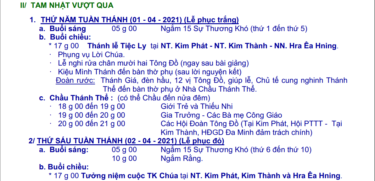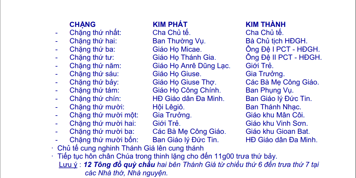 Chương Trình Tuần Thánh Tại Giáo Xứ Kim Phát