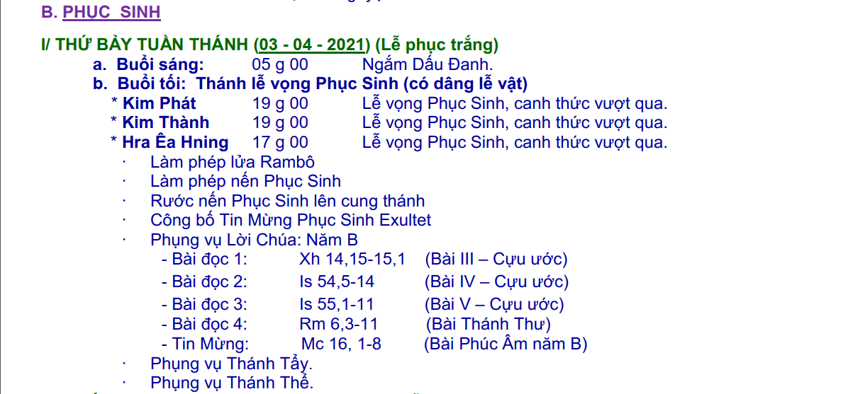 Chương Trình Phụng Vụ Tháng 3.2021 Tại Giáo Xứ Kim Phát
