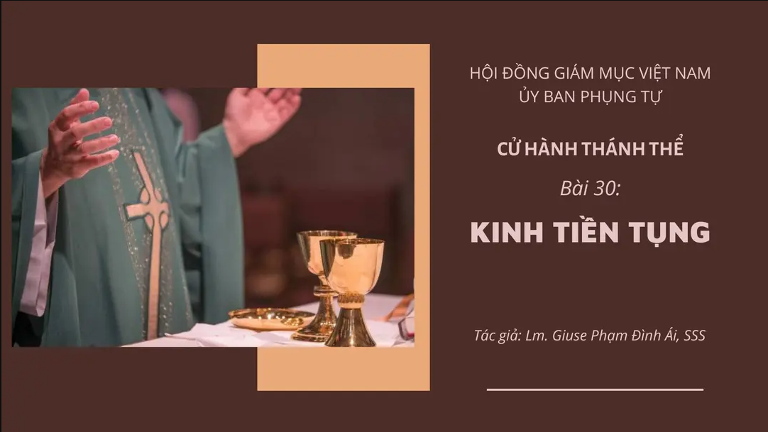 – Ngày 5 tháng 8 năm 2023, Ủy ban Phụng tự Hội đồng Giám mục Việt Nam đã thông báo về chương trình Đào tạo phụng vụ cho Dân Chúa gồm: (1) Thực hành mục vụ và (2) Kiến thức phụng vụ. Để đào sâu hiểu biết về kiến thức phụng vụ, Ủy ban Phụng tự trân trọng giới thiệu loạt bài về cử hành Thánh Thể do linh mục Giuse Phạm Đình Ái, SSS tổng hợp và biên soạn.