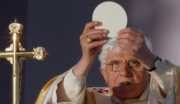 Ratzinger là người đi tiên phong trong lĩnh vực Giáo hội học, đặc biệt là trong việc đưa ra khái niệm về sự Hiệp thông. Tuy nhiên, quan niệm về Giáo hội của ngài cũng liên quan mật thiết đến Phụng vụ và không thể tách rời khỏi Phụng vụ. Chẳng hạn, ngài nhấn mạnh đến mối dây được thiết lập bởi Bí tích Thánh Thể, mối dây quy tụ chúng ta thành một gia đình qua việc thông phần Mình và Máu Đức Kitô. Ngài khẳng định rằng: “tất cả các cộng đoàn cử hành Thánh Thể cùng nhau vẫn chỉ là một cộng đoàn, bởi vì thân thể của Đức Kitô chỉ là một, và do đó Dân Chúa chỉ có thể là một”.