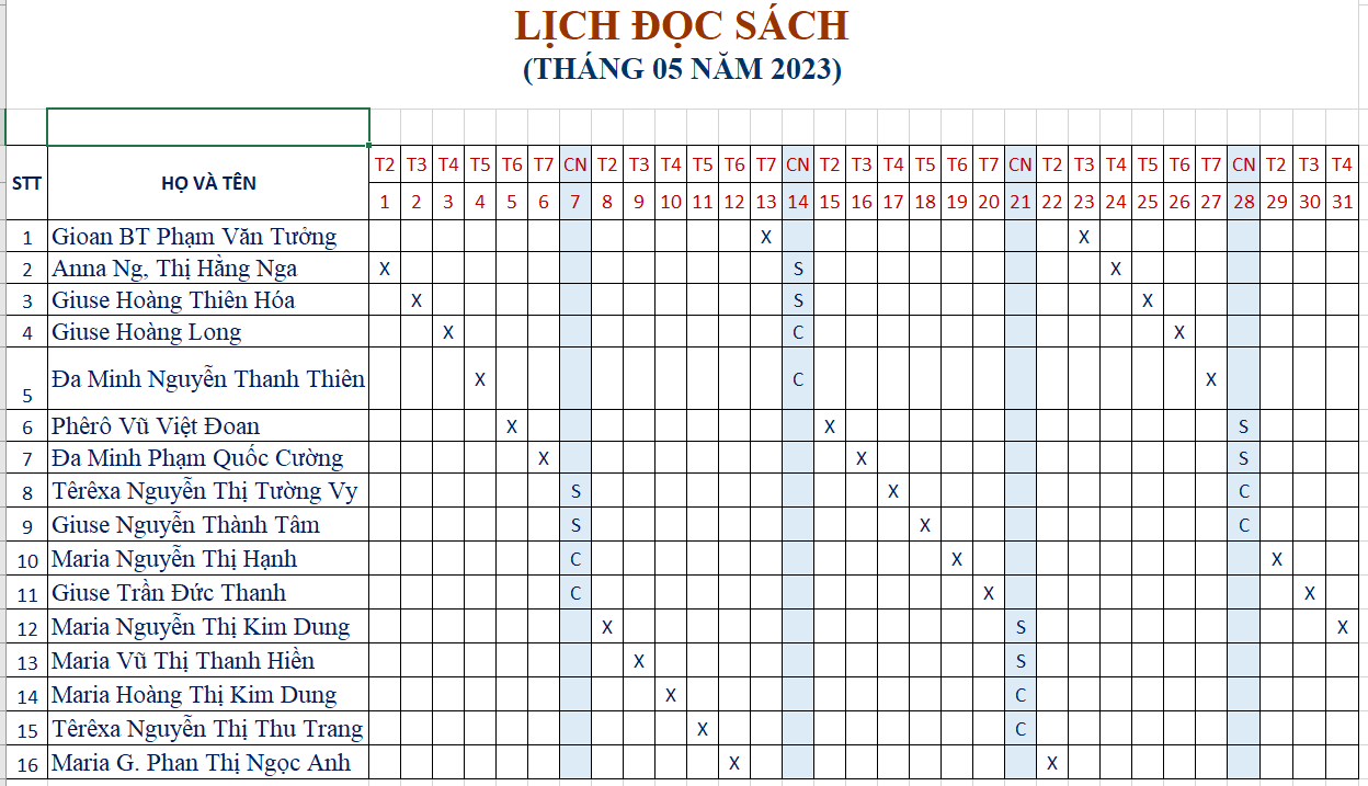 Lịch đọc sách tháng 5 – 2023 tại Gx Kim Phát