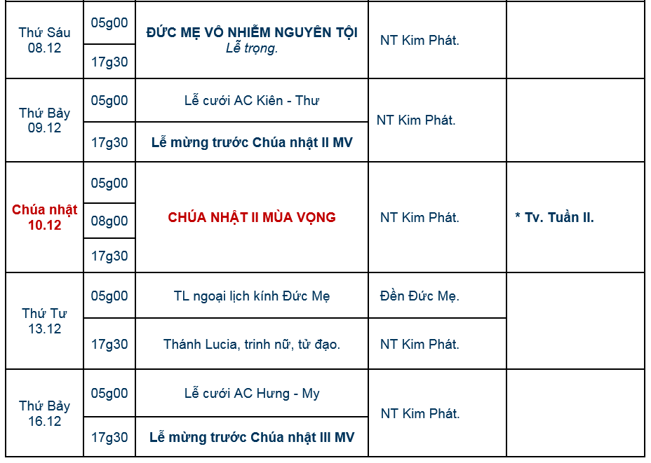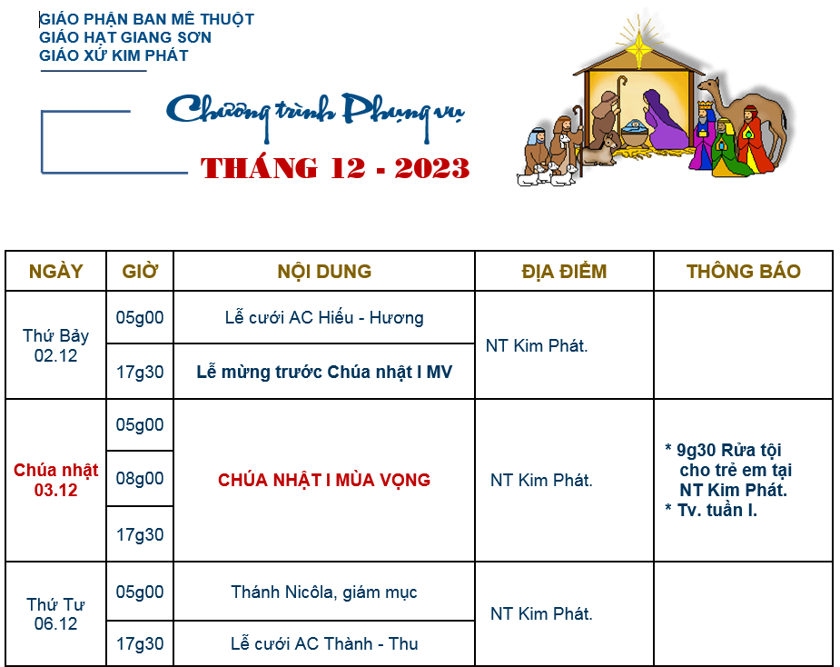 01/12/2023 Giáo Xứ Kim phát Phụng Vụ