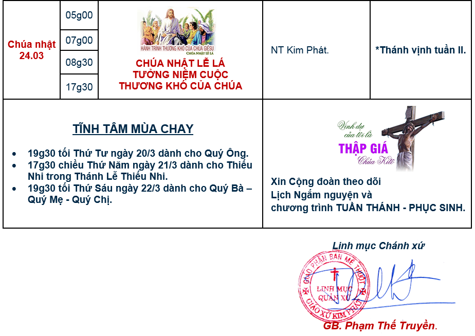 Chương Trình Tuần Thánh – Phục Sinh năm 2024