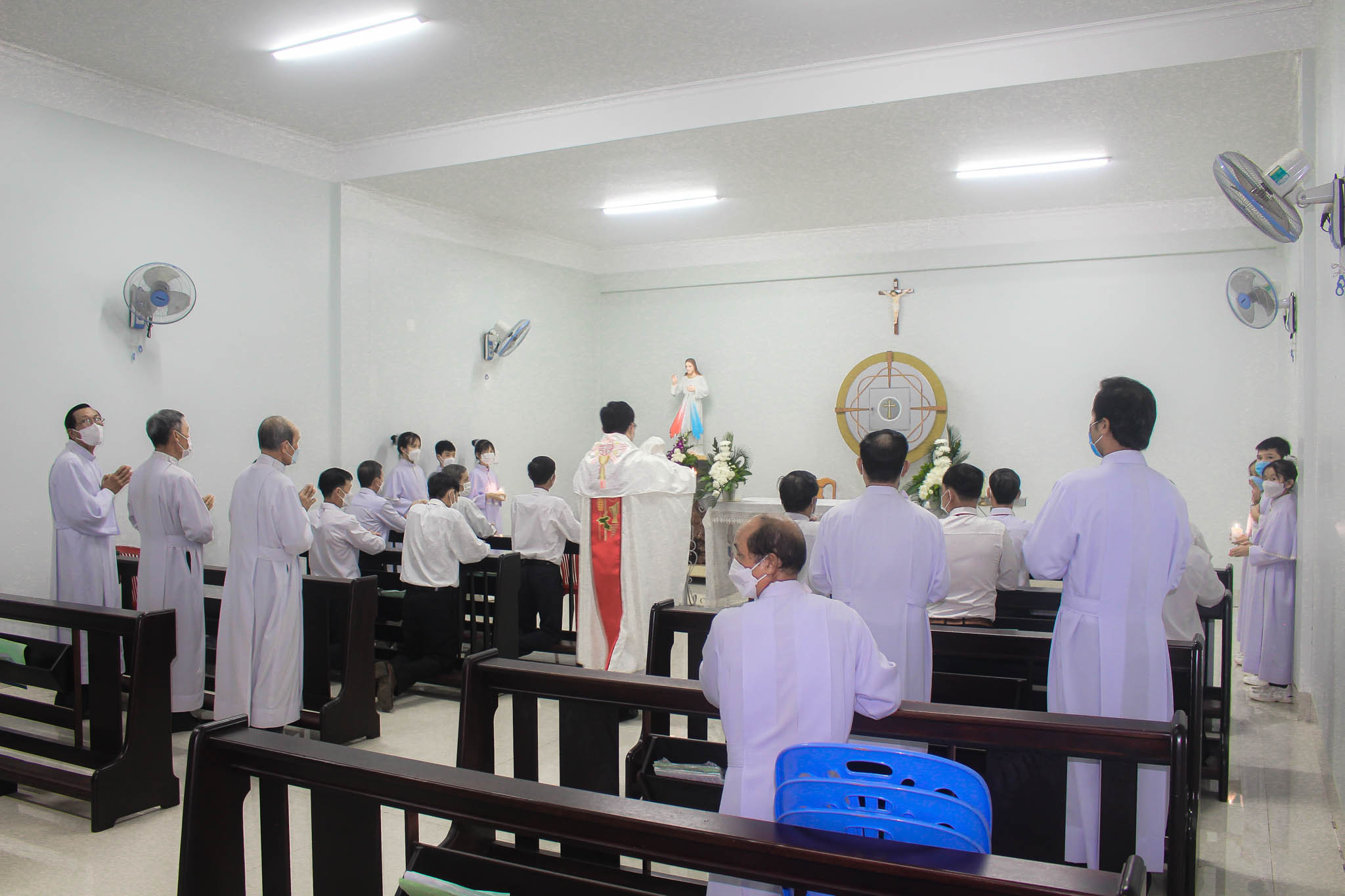 Ngay sau thánh lễ, Cha chủ tế đã kiệu Mình Thánh Chúa xuống bàn thờ phụ tại phòng thánh thể và cộng đoàn được thay phiên kính thờ Chúa Thánh thể.