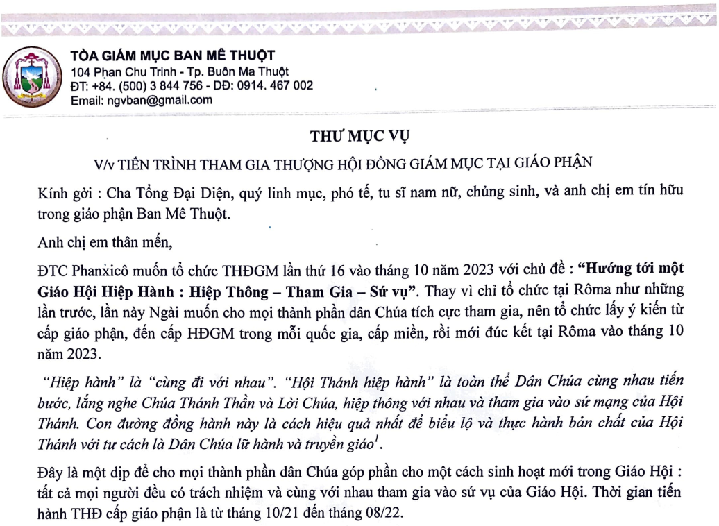 Văn Phòng Tòa Giám mục Đà Lạt xin kính báo Quý Cha về việc Đức Giám mục Giáo phận đã ra quyết định áp dụng vạ huyền chức (quen gọi là “treo chén”) đối với […]